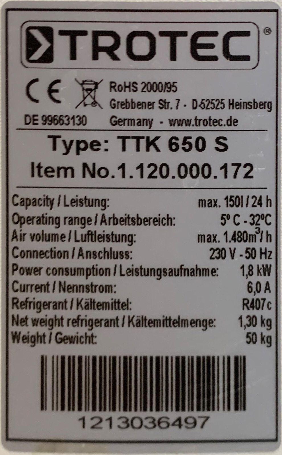 Effektive Entfeuchtungsergebnisse selbst bei niedrigen Temperaturen gewährleistet die professionelle Heißgas-Abtauautomatik des TTK 650 S. Aufgrund seiner sehr hohen Entfeuchtungsleistung verfügt dieser Gewerbeluftentfeuchter statt eines Wassertanks über einen Direktanschluss zur Kondensatabfuhr.